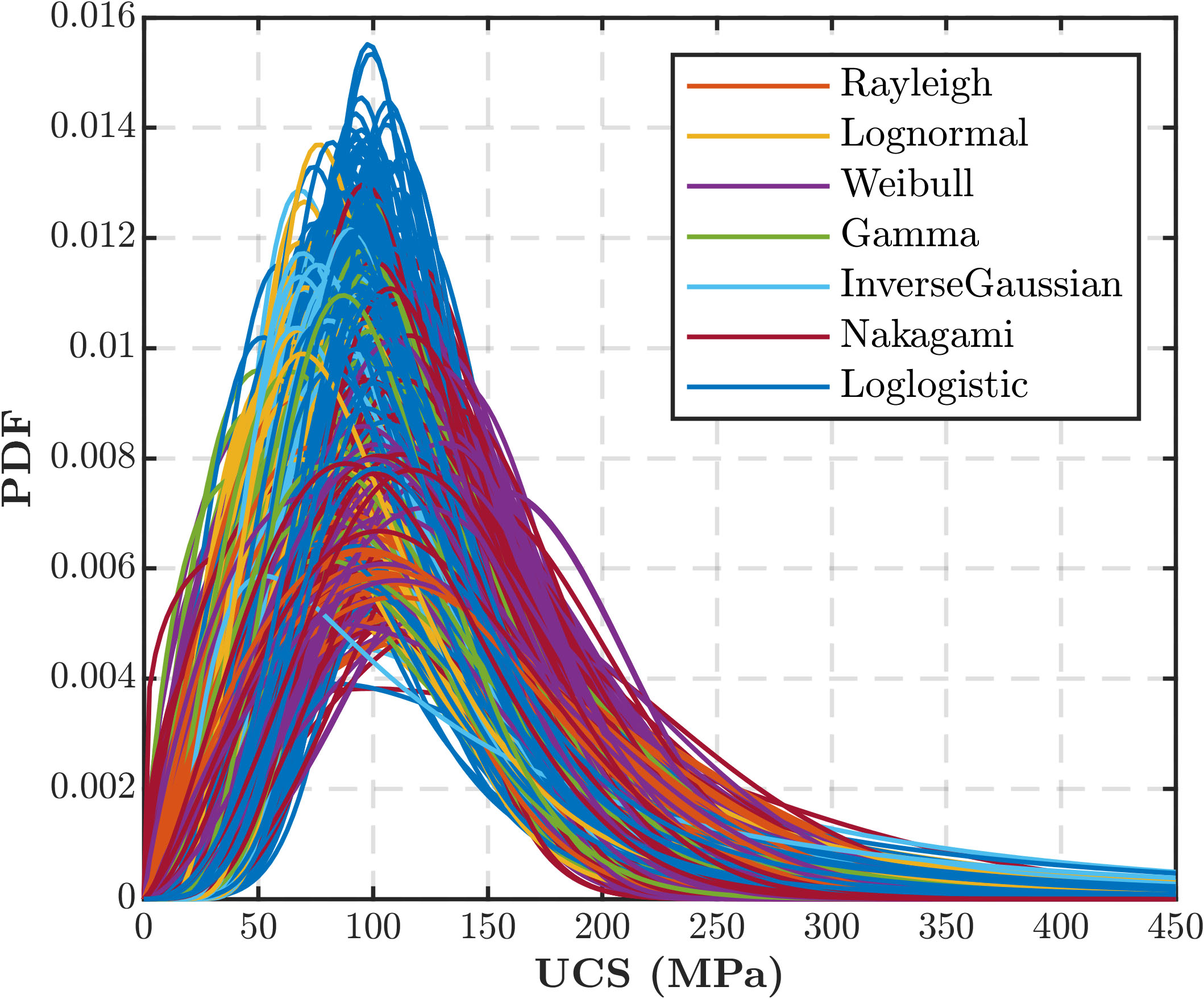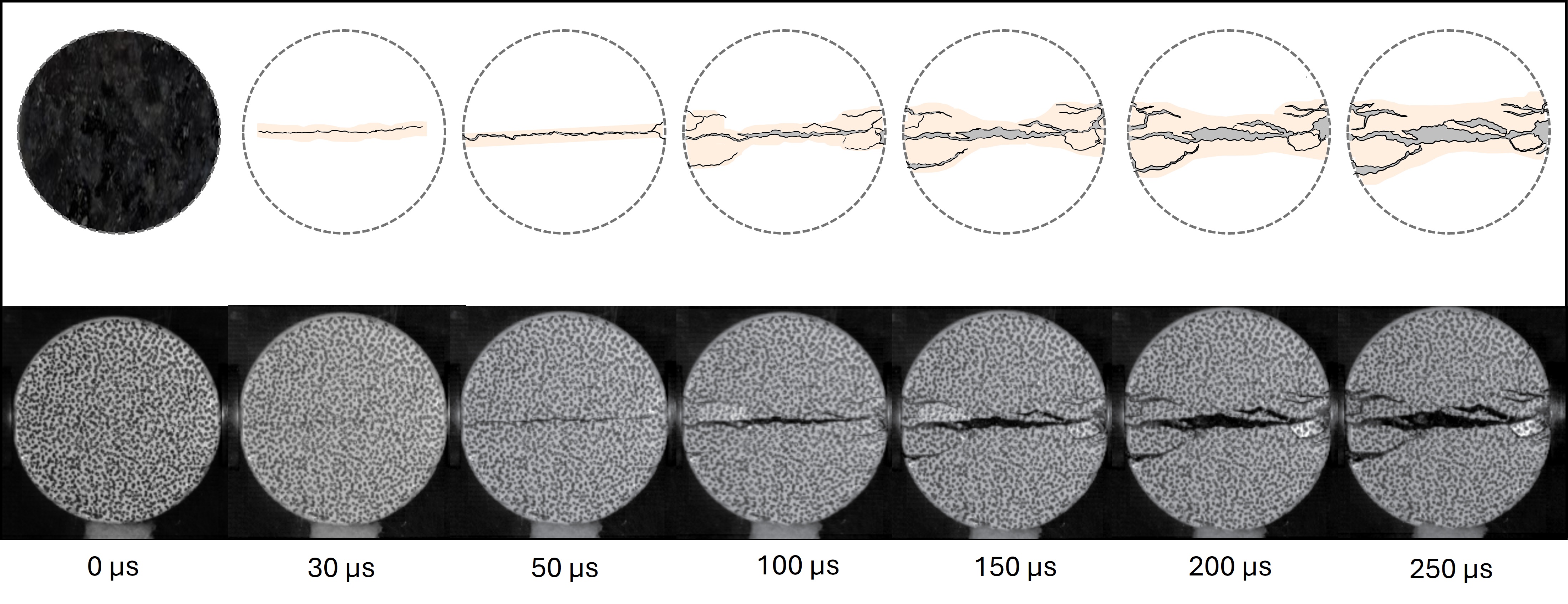 Uncertainty Analysis in Rock EngineeringRock properties exhibit both aleatory variability and epistemic uncertainties of intrinsic and extrinsic nature. A single rock engineering problem may thus involve parameters with multiple types of uncertainty. Depending on their nature, some properties are modeled probabilistically, while others require non-probabilistic approaches such as fuzzy, interval, or convex models. To address this complexity, we develop hybrid reliability methodologies that integrate interval, random, and bounded field theories for unified uncertainty modeling and propagation in rock engineering systems such as excavations and slopes. Another major research direction involves Bayesian techniques for characterizing rock properties using multi-model inference. We develop Bayesian methods capable of accounting for model and parameter uncertainties and propagate them through reliability and global sensitivity analyses (e.g., Sobol’s and Borgonovo’s indices). The framework is further extended to incorporate spatial variability of inputs, enhancing the robustness and realism of rock engineering assessments. Assessment of Dynamic Response of RocksRocks are often subjected to high loading rates in the field due to processes such as blasting and excavation. Understanding their behavior under dynamic conditions is therefore crucial. Our research focuses on investigating the mechanical response and progressive fracturing of intact, jointed and grouted rocks under such conditions using Split Hopkinson Pressure Bar (SHPB) testing coupled with high-speed imaging and Digital Image Correlation (DIC). We further employ numerical modeling to simulate these experiments and analyze the underlying grain-scale mechanisms. Grain-Scale Modelling of RocksThe macro-mechanical response of rocks is governed by the evolving micro-mechanisms that occur at the grain scale under various loading conditions. Understanding these evolving processes is essential for interpreting the mechanical behavior of rocks across different environments. Our research investigates these grain-scale mechanisms through numerical modeling approaches such as the Bonded Block Model (BBM) and Continuum Grain-Based Modeling (CGBM). In particular, we focus on dynamic loading conditions, incorporating the effects of mineral grain and contact variability using random, interval, and bounded field theories. THMC-Coupled Modelling of RocksThe mechanical response of underground caverns used for energy storage is governed by multiple interacting physical processes, making it essential to analyze their coupled behavior. Such caverns can be designed for the storage of hydrogen (H₂), carbon dioxide (CO₂), compressed air, and other gases. In this research, we investigate the coupled thermo-hydro-mechanical-chemical (THMC) processes that influence the stability and serviceability of storage caverns throughout their operational life cycle. We also address the critical issue of hydrogen embrittlement in cavern linings. Additionally, we develop probabilistic frameworks and global sensitivity analysis methods tailored to these energy storage applications. |